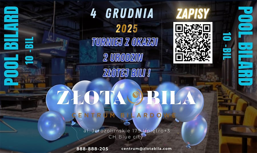 Mamy zaszczyt ogłosić, że 4 grudnia 2025r. zapraszamy Was na urodzinowy turniej Złotej Bili w 10-bil!